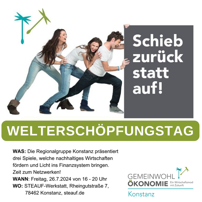 |    |                       |   MEIN HERZ SCHLÄGT FÜRS GEMEINWOHL   |       |       |       |       |                  Die Gemeinwohl-Ökonomie (GWÖ) ist ein innovatives und nachhaltiges Wirtschaftsmodell, das auf den Werten Menschenwürde, ökologische Verantwortung, Solidarität, soziale Gerechtigkeit, demokratische Mitbestimmung und Transparenz aufbaut. Als Alternative zum gegenwärtigen Wirtschaftsverständnis bietet die GWÖ konkrete Tools, um die drängenden Herausforderungen unserer Zeit zu bewältigen, die durch den Kapitalismus verursacht wurden: Ressourcenknappheit, Klimakrise, Artenverlust und soziale Ungleichheit.    Seit ihrem Beginn 2010 in Wien hat die Gemeinwohl-Ökonomie weltweit Anhängerinnen gewonnen. Heute umfasst die Bewegung 11.000 Unterstützerinnen, rund 4.500 Mitglieder in über 170 Regionalgruppen sowie über 1000 bilanzierte Unternehmen und Organisationen in 35 Ländern.    Von Anfang an unterstützt Stefanie Aufleger die GWÖ-Bewegung in Konstanz, regional und überregional, sowohl in der Beratung als auch als Dozentin an diversen Hochschulen in Deutschland und der Schweiz. 2017 widmete sie ihre Master-Thesis an der Donau-Universität Krems in Österreich dem Thema „Wertekommunikation in Unternehmen am Beispiel der Gemeinwohl-Bilanz“.    Mit der Einführung der Corporate Sustainability Reporting Directive (CSRD) gibt es jetzt auch einen gesetzlichen europäischen Rahmen, der Unternehmen verpflichtet, umfassender und transparenter über ihre Nachhaltigkeitsmaßnahmen zu berichten. Dies unterstreicht die Bedeutung der Gemeinwohl-Bilanz noch mehr.     Weitere Infos auf unserer Webseite.  |       |       |       |       |     |    |     |    |                 |   GEMEINWOHL WIRD ZUM EHRENAMT   |       |       |       |       |                  Hiermit offiziell verkündet: Stefanie Aufleger ist die neue Koordinatorin für die Gemeinwohl-Ökonomie in Baden-Württemberg. "Ich freue mich, dieses Ehrenamt zu übernehmen, was mir vermutlich vor allem mehr Arbeit als Ehre einbringen wird. Aber es ist mir ein wichtiges Engagement, dem ich mich gern widmen möchte. Mir liegt wertebasiertes Wirtschaften sehr am Herzen. Daher unterstütze ich es, dass Unternehmen Rahmenbedingungen schaffen, die das ermöglichen, wonach alle streben: ein glückliches Leben!"    In ihrer neuen Rolle als Koordinatorin ist Stefanie für 34 GWÖ-Berater*innen in Baden-Württemberg und für alle Unternehmen im Ländle zuständig, die sich wertorientiert und nachhaltig aufstellen wollen. Außerdem vertritt sie die schwäbisch-badische Region im DACH-Raum. "Gerade jetzt eine spannende Aufgabe, weil ich bei den neuesten Entwicklungen zu EU-Nachhaltigkeitsberichten hautnah dabei bin!"  |       |       |       |       |     |    |     |    |                 |   DRUCKER DES JAHRES HABEN VIEL ZU FEIERN   |       |       |       |       |                  Am vergangenen Donnerstag durfte ich der ZABELDruck GmbH die Urkunde überreichen, die ihre Pionierarbeit in der Gemeinwohl-Ökonomie Deutschland bestätigt.     Peter Zabel und seine Töchter Lena Hügel und Julika Keller geb. Zabel, die neuen Inhaberinnen und Geschäftsführerinnen, haben allen Grund zum Strahlen – gerade erst wurden sie zum Drucker des Jahres 2024 ausgezeichnet. Wow, was für eine Ehre!    Und das Beste: Ein kleines Detail aus dem Nähkästchen – die Urkunde wurde natürlich von der Druckerei Zabel selbst gedruckt. Nachhaltigkeit wird hier nicht nur großgeschrieben, sondern täglich gelebt und sichtbar gemacht. Das brachte nicht nur uns zum Schmunzeln, sondern auch unseren Bundestagsabgeordneten Andreas Jung. Als Nachhaltigkeits-Experte der CDU/CSU-Bundestagsfraktion in Berlin hat er eine klare Lieblingsdruckerei in unserer Region – und ich kann ihn da voll verstehen!  |       |       |       |       |     |    |     |    |     |    |                  Wieviel Menschenwürde erfahren Senioren in der Pflege? Das war eine spannende Frage, auf die ich in den letzten Wochen Antworten bekam.    An vier Tagen beleuchteten wir vier Werte und lernten die wertvolle Teamarbeit bei Aktive Lebensgestaltung Tobias Volz kennen. Und was soll ich sagen? Die Mitarbeitenden sind einfach super! Der Austausch ist offen und lebendig, genauso wie man es sich wünscht.    In über 20 Jahren Unternehmensberatung durfte ich bei einigen Pflegeeinrichtungen hinter die Kulissen spickeln. Und trotzdem ist noch Raum für Überraschungen - wie jetzt: Tobias Volz, SPD-Politiker und engagierter Unternehmer, redet nicht nur von Werten, sondern setzt sie zusammen mit seinem Team vorbildlich Tag für Tag im Betrieb um. Kein Wunder, dass beim mobilen Pflegedienst in Allensbach Einiges richtig läuft – und Vieles vielleicht sogar besser als anderswo!    Der wunderschöne Hof Höfen bietet uns nicht nur eine traumhafte Kulisse, sondern auch großartiges Essen und herzliche Gastfreundschaft von Alex Rommel und seinem Team. Ein herzlicher Dank gilt wieder einmal unserem Robin Heuser, der die Momente fotografisch festhielt, während Samuel Häckel, der bei VAUDE als Auszubildender live erlebt hat, wie Wertekultur und Gemeinwohl-Ökonomie im Betrieb eingeführt wurden, diesen Prozess assistiert.  |       |       |       |       |     |    |     |    |     |    |     |    |                  NACHHALTIGES WIRTSCHAFTEN SPIELERISCH ERLEBEN!    Die Regionalgruppe Konstanz lädt in die STEAUF-Werkstatt ein! Wir stellen drei spannende Spiele vor, die nachhaltiges Wirtschaften fördern und Einblicke in das Finanzsystem bieten. Erlebt einen inspirierenden Nachmittag voller neuer Erkenntnisse und wertvoller Netzwerkmöglichkeiten.    WAS ERWARTET EUCH?  - Gemeinwohlspiel: Wer steht wie zu welchen Werten?  - Oeconomia: Ein interaktives Seminarangebot von Samirah Kenawi über das Falschgeldsystem.  - STEAUF-Spiel: Genetischer Code von lebendigen Unternehmen.    PROGRAMM  16:00 Uhr Begrüßung und Einführung in die Gemeinwohlökonomie  16:30 Uhr Start der ersten Spiel